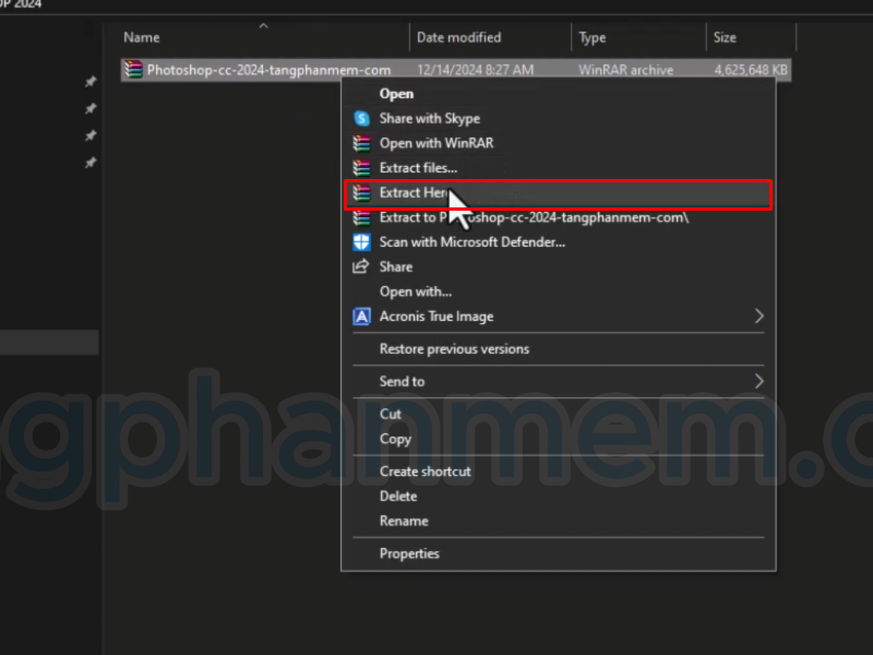 Sử dụng WinRAR để giải nén file vừa tải bằng cách nhấp chuột phải và chọn “Extract Here”.